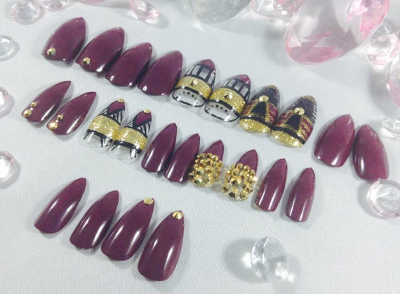 Maroon Nails With Gold : Maroon With Gold Coffin Nails New Expression Nails. 4.5 out of 5 stars. This shape and this maroon color go so well together, and they are ready for your night out with the girls. No harsh ingredients or adhesives that lead to damaged nails. The main rule here is not to go crazy on gold. The combo of maroon and gold nail colors never goes out of fashion.